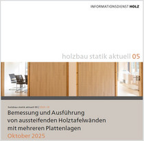 Holztafelwände können in Gebäuden als Aussteifungselemente gegen horizontale Lasten eingesetzt und nach Eurocode 5 bemessen werden. Die aussteifende Wirkung entsteht durch die schubfeste Verbindung von Beplankungen mit den darunterliegenden Rippen. mehr