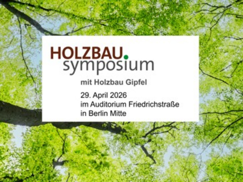 Am Mittwoch, den 29. April 2026 findet das 2. Internationale Holzbau Symposium mit dem Gipfel Nachhaltiges Bauen und Wohnen in Berlin-Mitte statt. Für alle, die nicht live vor Ort dabei sein können, wird ein Livestream eingerichtet, so dass die Veranstaltung zeitgleich online verfolgt werden kann